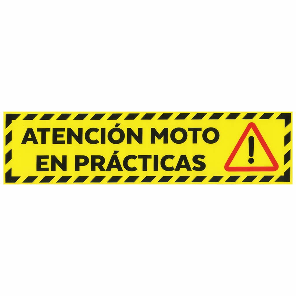 Cartel imantado con señalización de advertencia de peligro por «moto en práctica».
